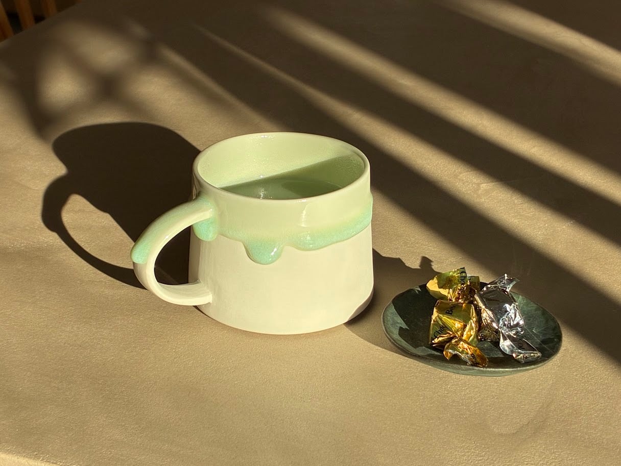 とろりとかかった釉薬が可愛らしいマグカップ。マットな質感と艶やかな釉薬の組合せが美しく、角度ごとの表情もまたティータイムをより楽しませてくれます。